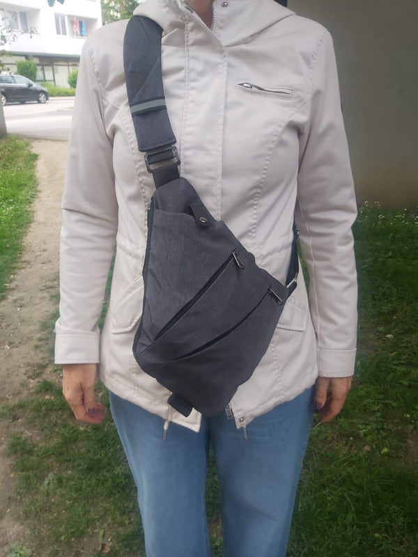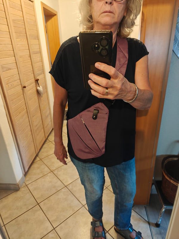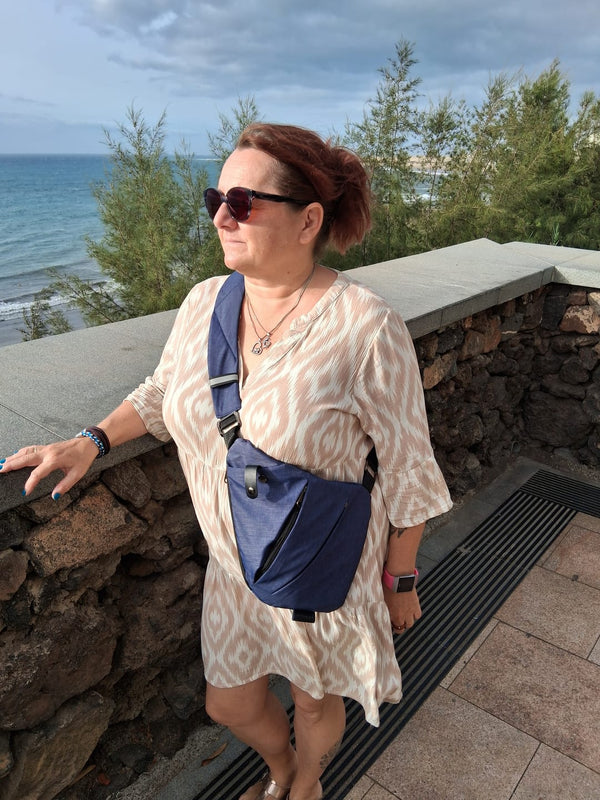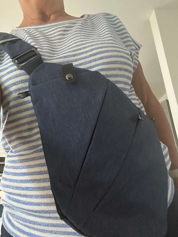 Pour une protection optimale, portez Le Nomade en bandoulière, croisé sur le torse et positionné sur le côté ou à l’avant de vous.