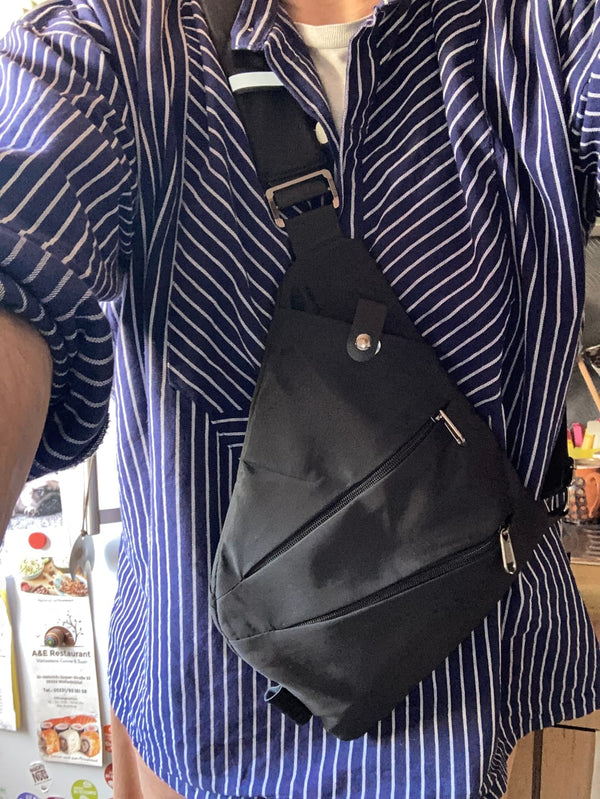 Notre sac en bandoulière Le Nomade vous permet de vous déplacer avec vos essentiels, sans prendre le risque de se les faire voler. Ses fermetures dissimulées et sa sangle résistante aux coupures protègent efficacement vos affaires, tout en restant faciles d’accès pour vous. Compact, léger et imperméable, il offre 4 compartiments sécurisés pour accueillir votre téléphone, tablette, portefeuille ou bouteille d’eau.